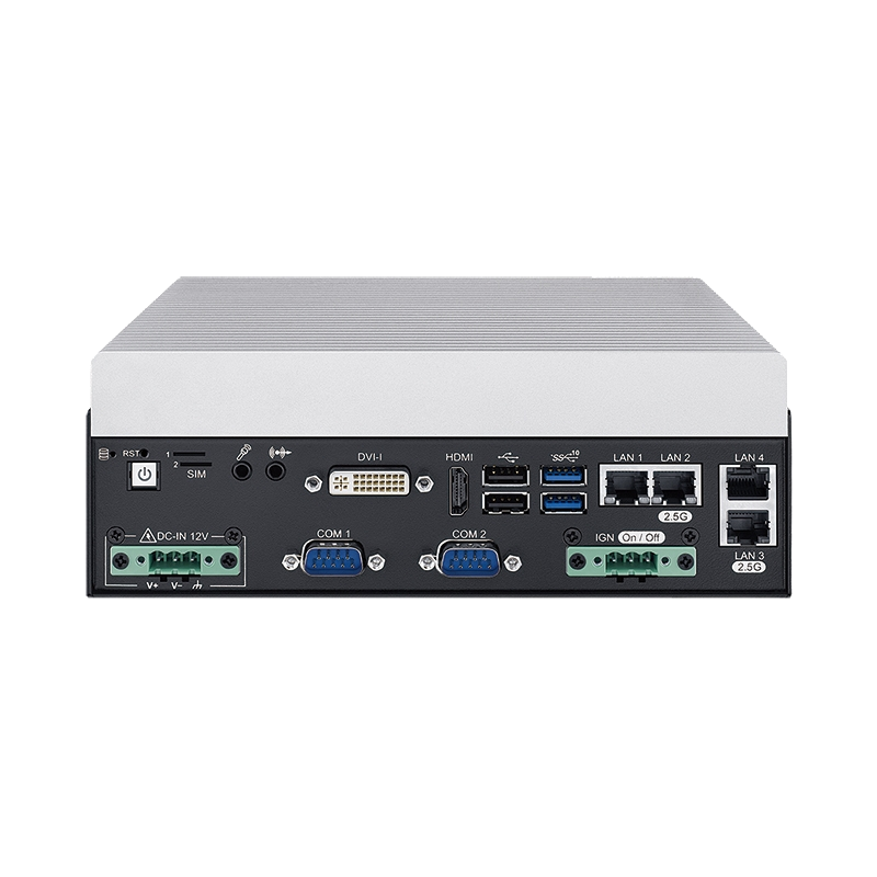 I/O | 2 x USB 3.2 Type-A; 2 x USB 2.0 Type-A; 2 x COM RS-232/422/485; 2 x External SIM Card Sockets; 1 x HDMI 2.0 : Up to 3840 x 2160 @60Hz; 1 x DVI-I : Up to 1920 x 1080 @60Hz |